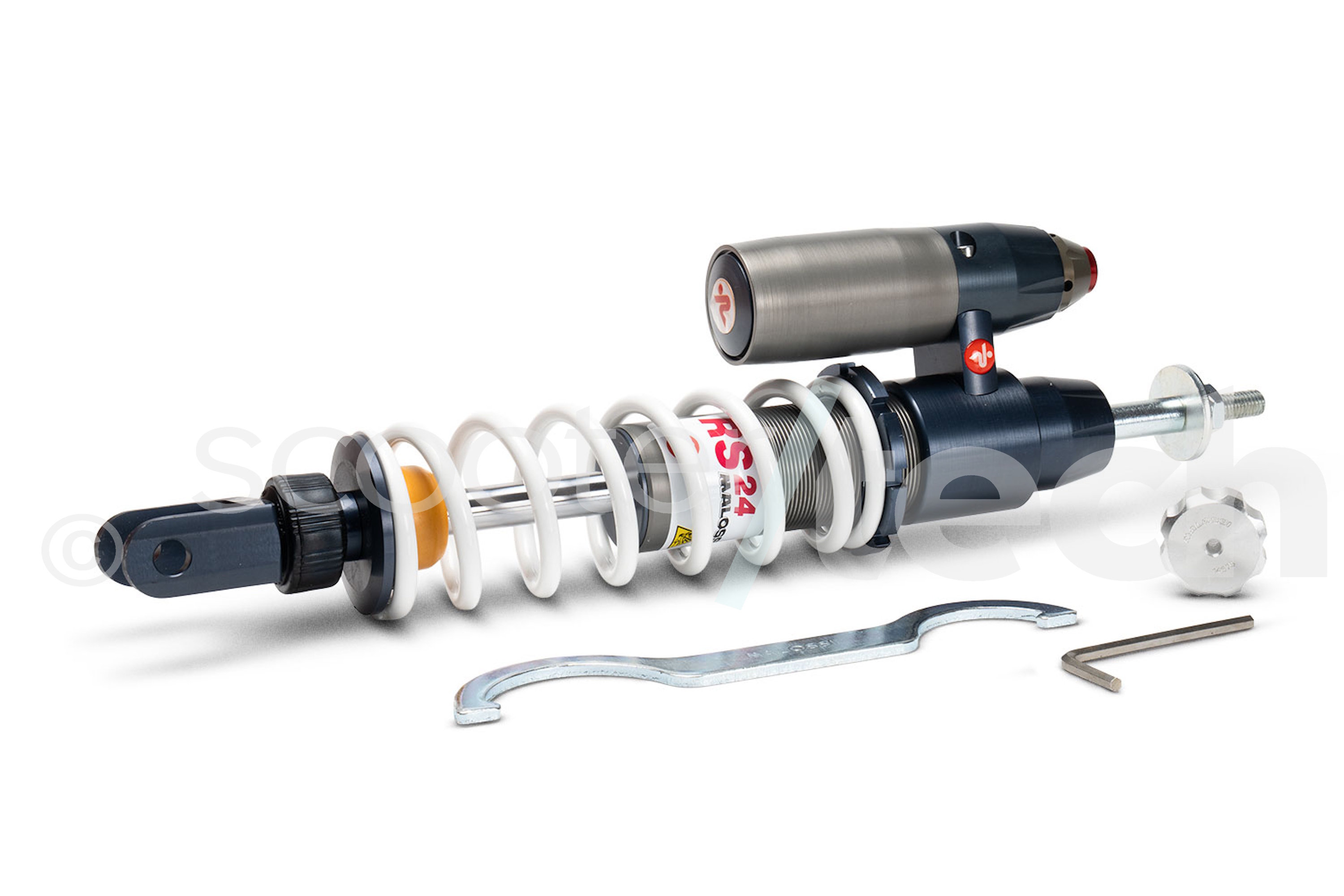 Von Malossi speziell für den Renneinsatz konzipiert und entwickelt, werden diese Hightech-Federbeine von der renommierten Firma Paioli gefertigt. Nicht umsonst sind Malossi-Federbeine eine der am meisten verwendeten Federbeine bei Scooterrennen. Dazu trägt auch die einzigartige Racingoptik der Stoßdämpfer bei. Die Federvorspannung kann ebenso wie die Druckstufe stufenlos verstellt werden (passender Schlüssel wird mitgeliefert). Das RS24/10 Federbein ist noch feiner Abzustimmen als das RS24 Federbein!