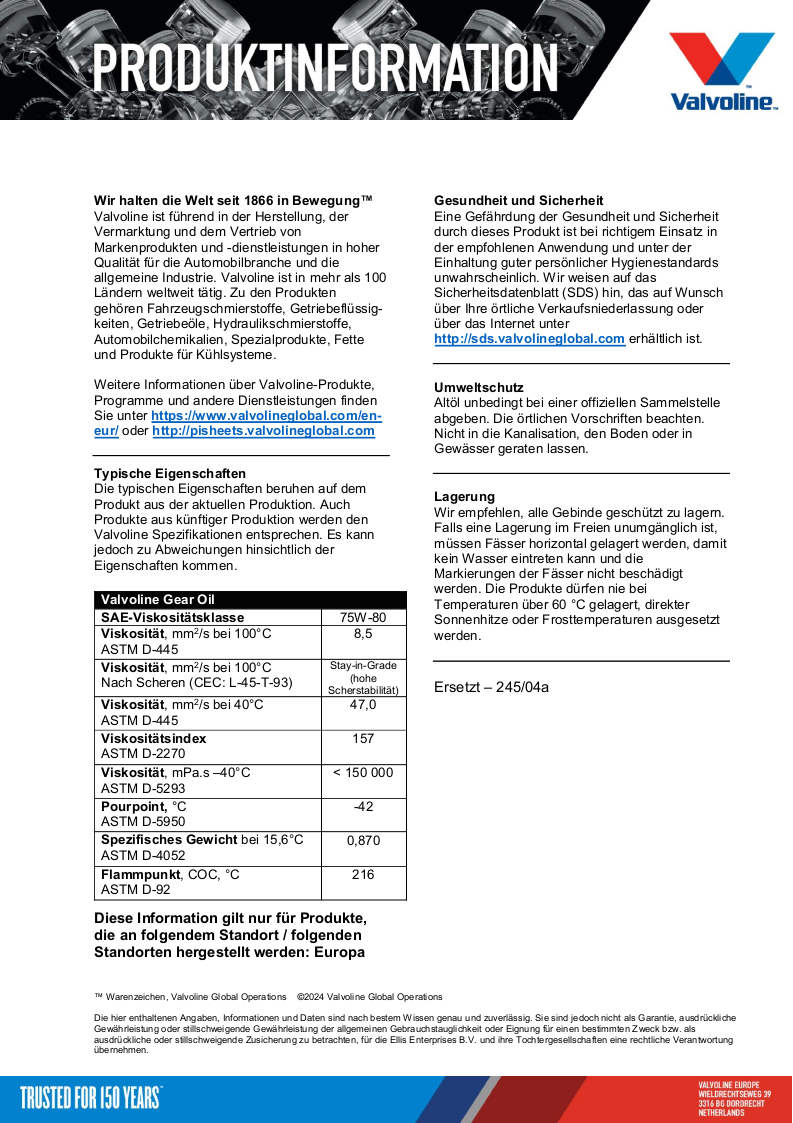 - Viskosität: 75W-80